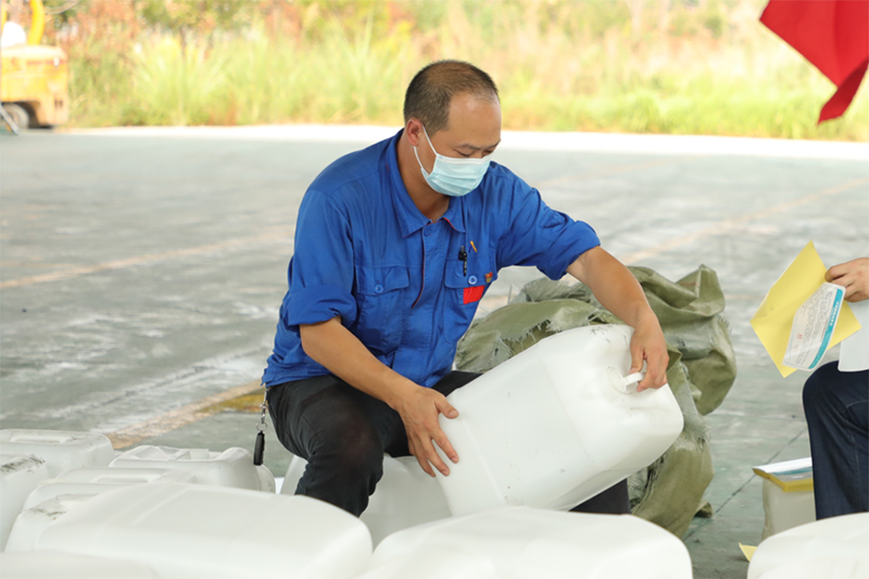 全力以赴,保供抗“疫”?!跋氲谝?、爭第一、干第一、我就是第一”是他的座右銘。自宜賓疫情發(fā)生以來,在支部“紅色動員令”的號召下,正值休假的他主動“請戰(zhàn)”,不分晝夜全身心投入到次氯酸鈉消毒原液生產(chǎn)配制中,現(xiàn)場叉車不夠,他帶領(lǐng)運行班組人工搬運上車,手上磨起泡也依舊堅持,短短二天時間完成了22100千克消毒原液生產(chǎn)任務(wù)。現(xiàn)江安片區(qū)已解除閉環(huán)生產(chǎn),但他依舊堅守在崗位,有序推進公司生產(chǎn)計劃。
